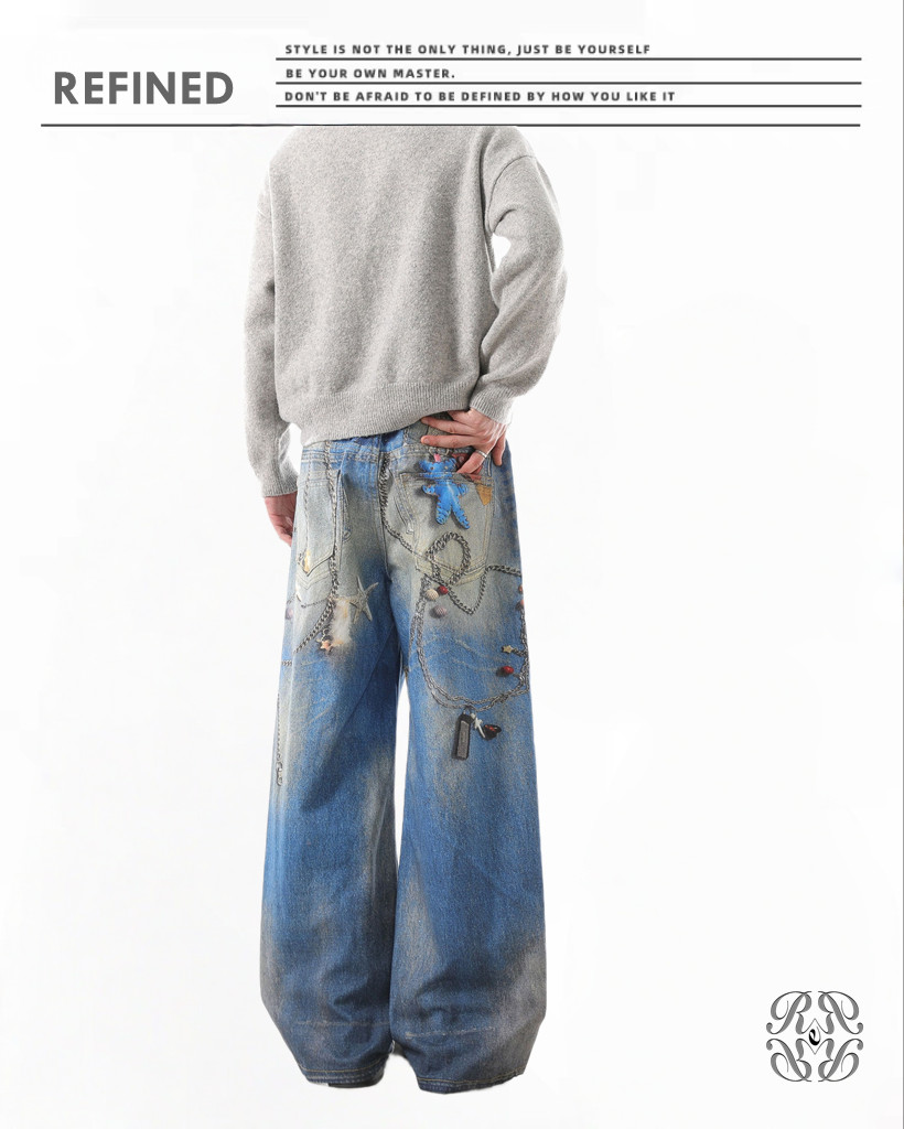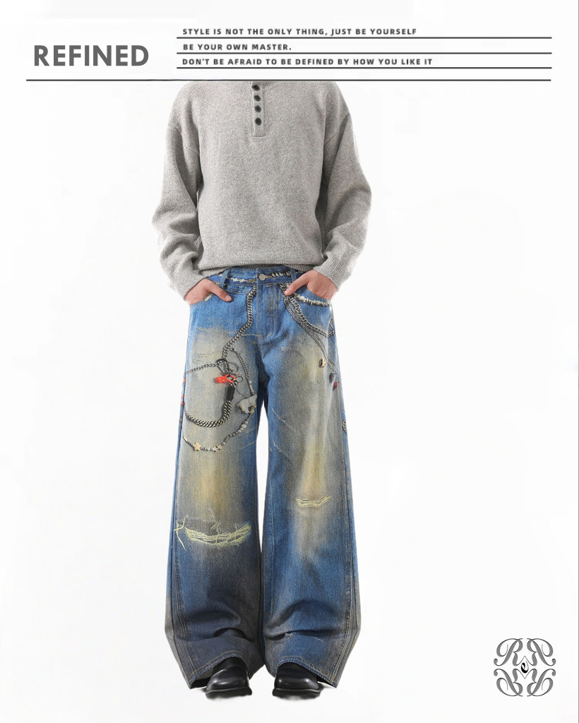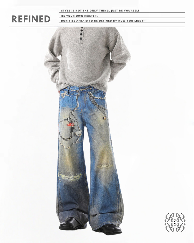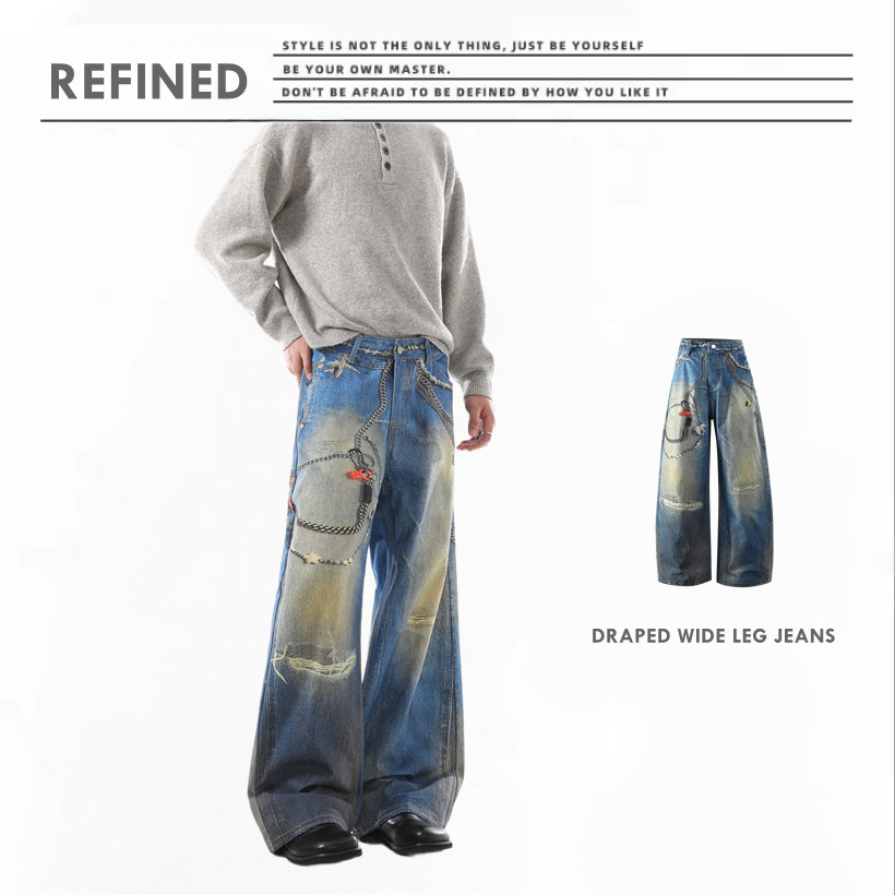 R038 水洗垂感闊脚拖地褲